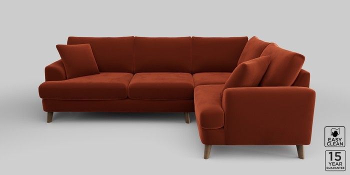 6.12.1 Buy Parker Medium Corner Sofa - Right Hand Plush Velvet Easy Clean Ginger Orange Low Retro Tapered - Mid from the Next UK online shop Click here to use our accessible website