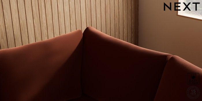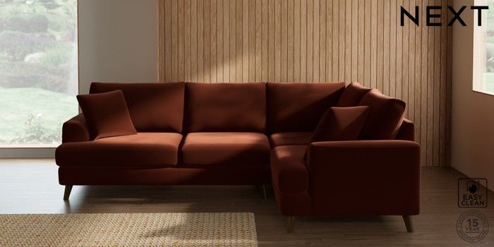 7.2.10 Buy Parker Medium Corner Sofa - Right Hand Plush Velvet Easy Clean Ginger Orange Low Retro Tapered - Mid from the Next UK online shop Click here to use our accessible website