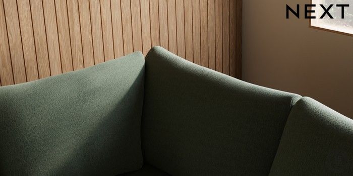 7.2.10 Buy Parker Medium Corner Sofa - Right Hand Relaxed Linen Look Dark Green Low Retro Tapered - Light from the Next UK online shop Click here to use our accessible website