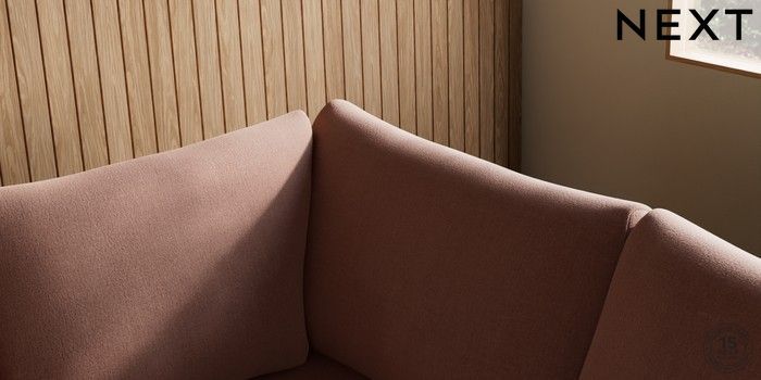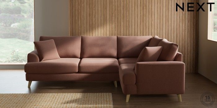 7.2.10 Buy Parker Medium Corner Sofa - Right Hand Relaxed Linen Look Light Rust Brown Low Retro Tapered - Light from the Next UK online shop Click here to use our accessible website