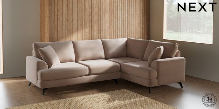 7.2.5 Buy Parker Medium Corner Sofa - Right Hand Relaxed Linen Look Mid Natural High Metal - Black from the Next UK online shop Click here to use our accessible website