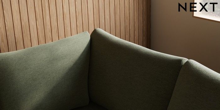 7.2.10 Buy Parker Medium Corner Sofa - Right Hand Ripple Chenille Mid Moss Green High Metal - Chrome from the Next UK online shop Click here to use our accessible website