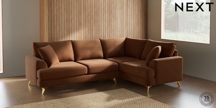 7.2.5 Buy Parker Medium Corner Sofa - Right Hand Ripple Chenille Mid Rust Brown High Metal - Brass from the Next UK online shop Click here to use our accessible website