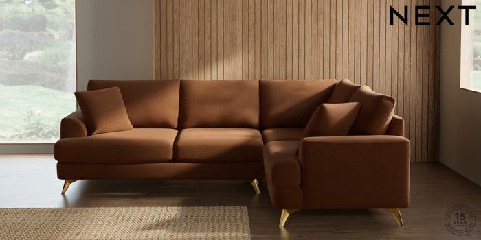 7.2.10 Buy Parker Medium Corner Sofa - Right Hand Ripple Chenille Mid Rust Brown High Metal - Brass from the Next UK online shop Click here to use our accessible website