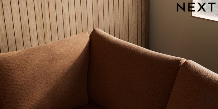 7.2.10 Buy Parker Medium Corner Sofa - Right Hand Ripple Chenille Mid Rust Brown Low Retro Tapered - Light from the Next UK online shop Click here to use our accessible website