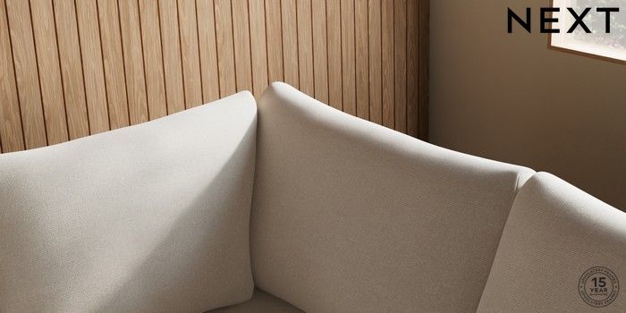 7.2.10 Buy Parker Medium Corner Sofa - Right Hand Studio Chenille Oyster Low Retro Tapered - Dark from the Next UK online shop Click here to use our accessible website