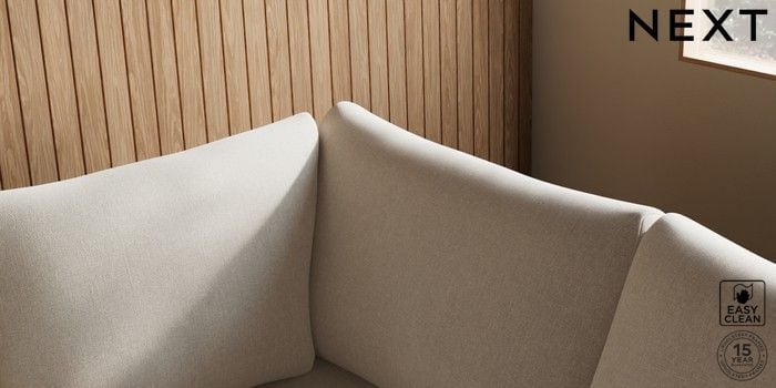 7.2.10 Buy Parker Medium Corner Sofa - Right Hand Tweedy Blend Easy Clean Oyster Low Retro Tapered - Mid from the Next UK online shop Click here to use our accessible website