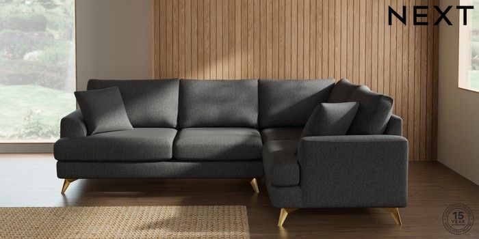 7.2.10 Buy Parker Medium Corner Sofa - Right Hand Tweedy Chenille Dark Grey High Metal - Brass from the Next UK online shop Click here to use our accessible website