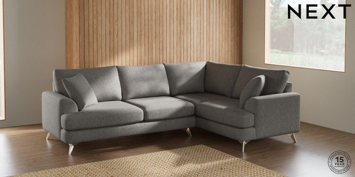 7.2.5 Buy Parker Medium Corner Sofa - Right Hand Tweedy Chenille Mid Grey High Metal - Chrome from the Next UK online shop Click here to use our accessible website
