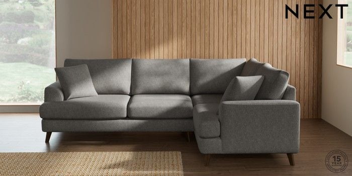 7.2.10 Buy Parker Medium Corner Sofa - Right Hand Tweedy Chenille Mid Grey Low Retro Tapered - Mid from the Next UK online shop Click here to use our accessible website