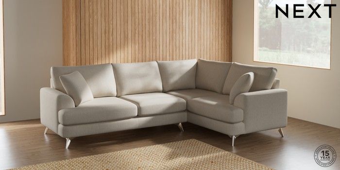 7.2.5 Buy Parker Medium Corner Sofa - Right Hand Tweedy Chenille Oyster High Metal - Chrome from the Next UK online shop Click here to use our accessible website