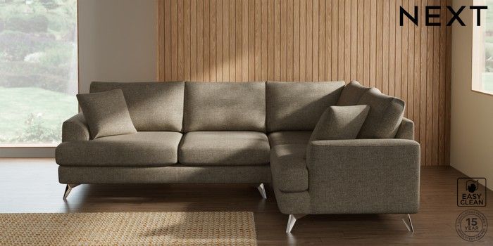 7.2.10 Buy Parker Medium Corner Sofa - Right Hand Woven Chenille Easy Clean Mid Natural High Metal - Chrome from the Next UK online shop Click here to use our accessible website