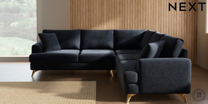 7.2.10 Buy Parker Medium Corner Sofa - Universal Boucle Chenille Dark Slate Blue High Metal - Brass from the Next UK online shop Click here to use our accessible website
