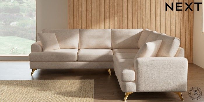 7.2.10 Buy Parker Medium Corner Sofa - Universal Boucle Chenille Oyster High Metal - Brass from the Next UK online shop Click here to use our accessible website