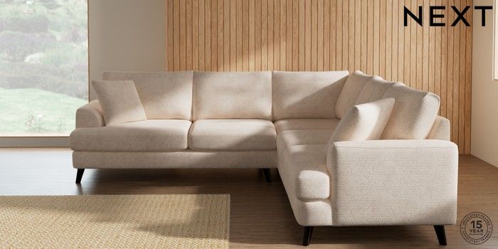 7.2.10 Buy Parker Medium Corner Sofa - Universal Boucle Chenille Oyster Low Retro Tapered - Dark from the Next UK online shop Click here to use our accessible website