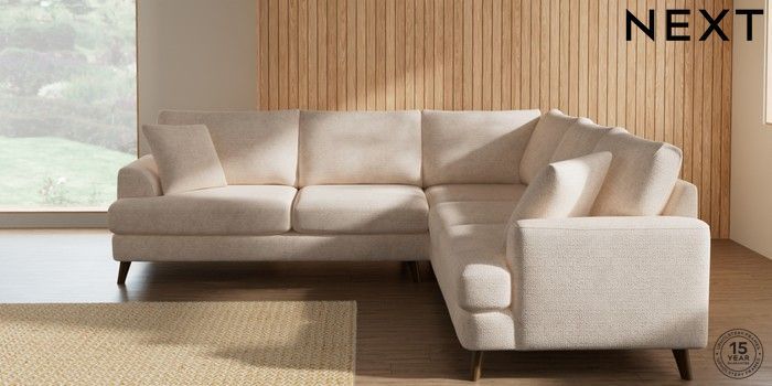 7.2.10 Buy Parker Medium Corner Sofa - Universal Boucle Chenille Oyster Low Retro Tapered - Mid from the Next UK online shop Click here to use our accessible website