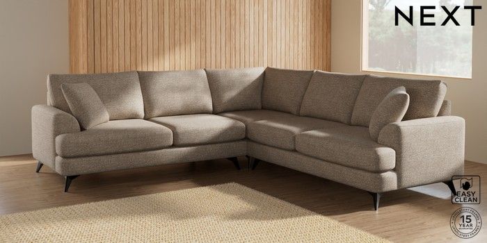 7.2.5 Buy Parker Medium Corner Sofa - Universal Chunky Boucle Easy Clean Mid Natural High Metal - Black from the Next UK online shop Click here to use our accessible website