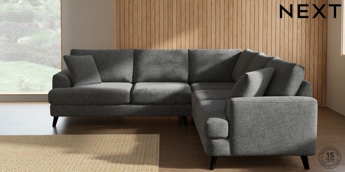 7.2.10 Buy Parker Medium Corner Sofa - Universal Chunky Chenille Dark Grey Low Retro Tapered - Dark from the Next UK online shop Click here to use our accessible website