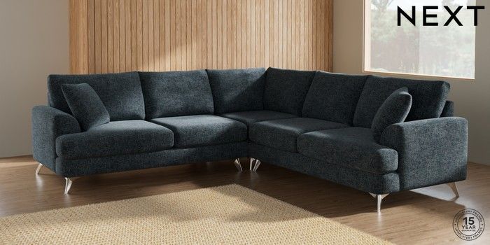 7.2.5 Buy Parker Medium Corner Sofa - Universal Chunky Chenille Dark Navy Blue High Metal - Chrome from the Next UK online shop Click here to use our accessible website