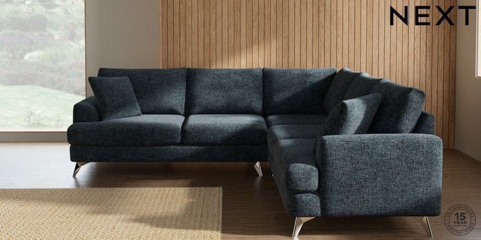 7.2.10 Buy Parker Medium Corner Sofa - Universal Chunky Chenille Dark Navy Blue High Metal - Chrome from the Next UK online shop Click here to use our accessible website
