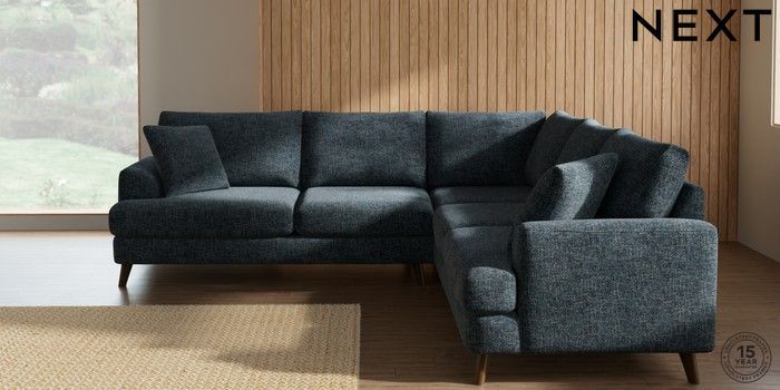 7.2.10 Buy Parker Medium Corner Sofa - Universal Chunky Chenille Dark Navy Blue Low Retro Tapered - Mid from the Next UK online shop Click here to use our accessible website
