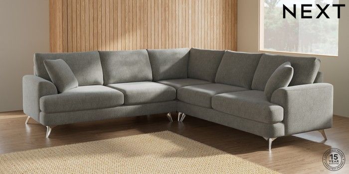 7.2.6 Buy Parker Medium Corner Sofa - Universal Chunky Chenille Light Grey High Metal - Chrome from the Next UK online shop Click here to use our accessible website