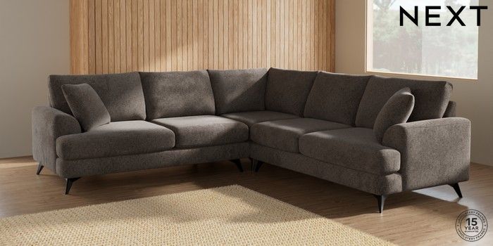 7.2.5 Buy Parker Medium Corner Sofa - Universal Chunky Chenille Mink Brown High Metal - Black from the Next UK online shop Click here to use our accessible website
