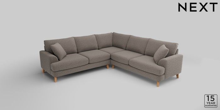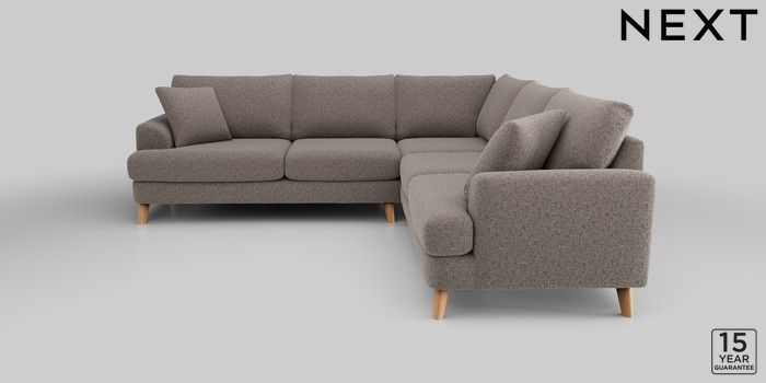 6.12.1 Buy Parker Medium Corner Sofa - Universal Chunky Chenille Mink Brown Low Retro Tapered - Light from the Next UK online shop Click here to use our accessible website