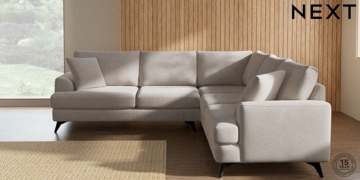 7.2.10 Buy Parker Medium Corner Sofa - Universal Chunky Chenille Oyster High Metal - Black from the Next UK online shop Click here to use our accessible website