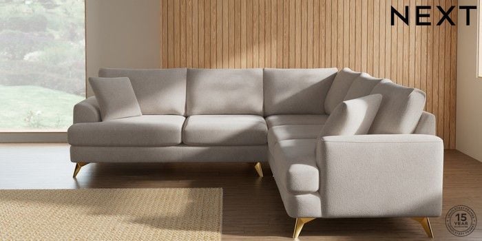 7.2.10 Buy Parker Medium Corner Sofa - Universal Chunky Chenille Oyster High Metal - Brass from the Next UK online shop Click here to use our accessible website