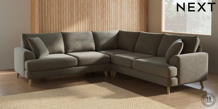 7.2.5 Buy Parker Medium Corner Sofa - Universal Chunky Marl Light Olive Green Low Retro Tapered - Light from the Next UK online shop Click here to use our accessible website