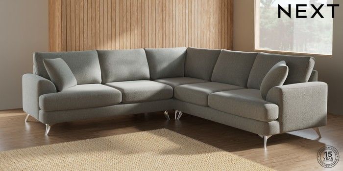7.2.5 Buy Parker Medium Corner Sofa - Universal Chunky Texture Dove High Metal - Chrome from the Next UK online shop Click here to use our accessible website