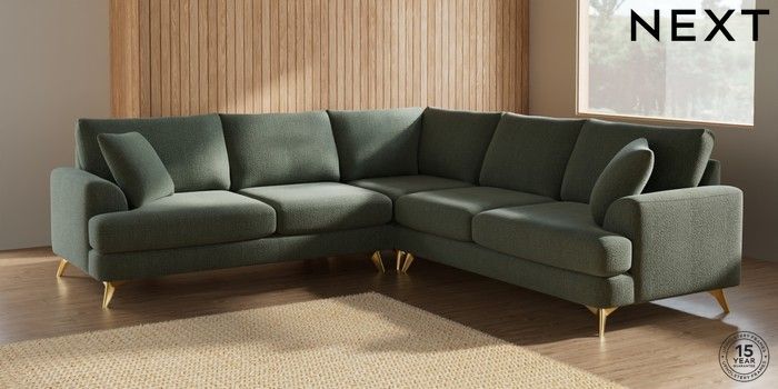 7.2.5 Buy Parker Medium Corner Sofa - Universal Chunky Texture Mid Forest Green High Metal - Brass from the Next UK online shop Click here to use our accessible website