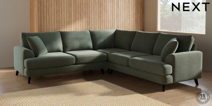 7.2.5 Buy Parker Medium Corner Sofa - Universal Chunky Texture Mid Forest Green Low Retro Tapered - Dark from the Next UK online shop Click here to use our accessible website