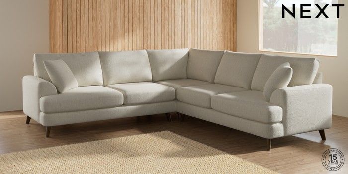 7.2.5 Buy Parker Medium Corner Sofa - Universal Chunky Texture Oyster Low Retro Tapered - Mid from the Next UK online shop Click here to use our accessible website