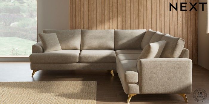 7.2.10 Buy Parker Medium Corner Sofa - Universal Chunky Weave Cream High Metal - Brass from the Next UK online shop Click here to use our accessible website