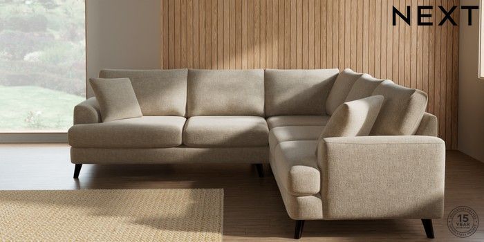 7.2.10 Buy Parker Medium Corner Sofa - Universal Chunky Weave Cream Low Retro Tapered - Dark from the Next UK online shop Click here to use our accessible website