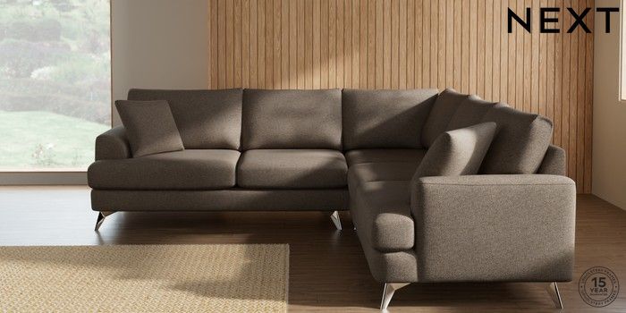 7.2.10 Buy Parker Medium Corner Sofa - Universal Chunky Weave Dark Natural High Metal - Chrome from the Next UK online shop Click here to use our accessible website