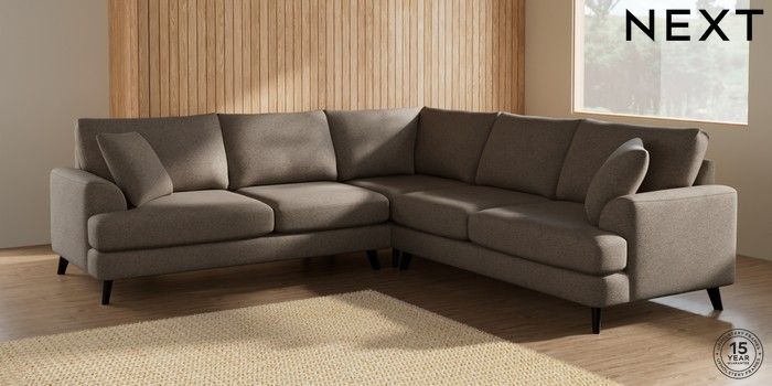7.2.5 Buy Parker Medium Corner Sofa - Universal Chunky Weave Dark Natural Low Retro Tapered - Dark from the Next UK online shop Click here to use our accessible website