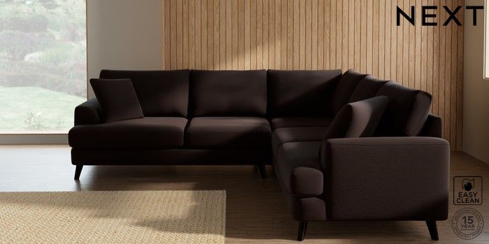 7.2.10 Buy Parker Medium Corner Sofa - Universal Fine Chenille Easy Clean Chocolate Brown Low Retro Tapered - Dark from the Next UK online shop Click here to use our accessible website