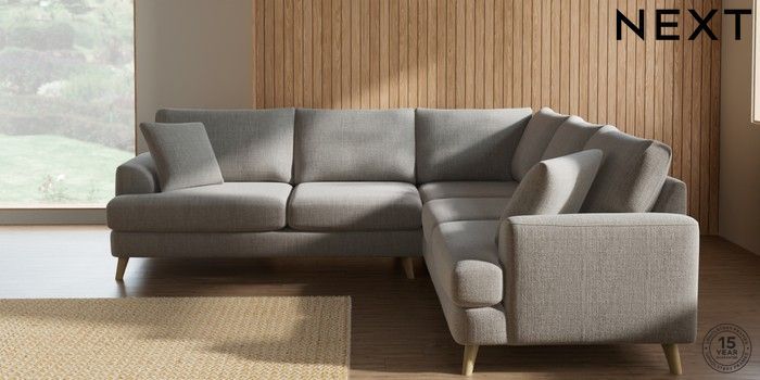 7.2.10 Buy Parker Medium Corner Sofa - Universal Chunky Weave Dove Grey Low Retro Tapered - Light from the Next UK online shop Click here to use our accessible website