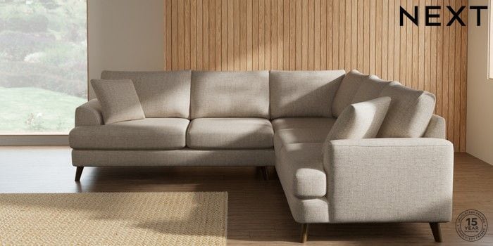 7.2.10 Buy Parker Medium Corner Sofa - Universal Chunky Weave Mid Natural Low Retro Tapered - Mid from the Next UK online shop Click here to use our accessible website