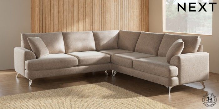 7.2.5 Buy Parker Medium Corner Sofa - Universal Cotswold Chenille Light Natural High Metal - Chrome from the Next UK online shop Click here to use our accessible website
