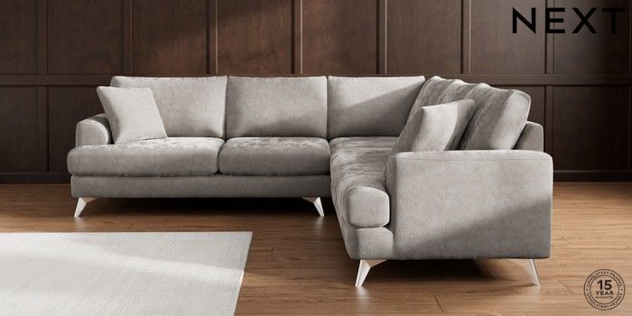 7.2.10 Buy Parker Medium Corner Sofa - Universal Distressed Velour French Grey High Metal - Chrome from the Next UK online shop Click here to use our accessible website