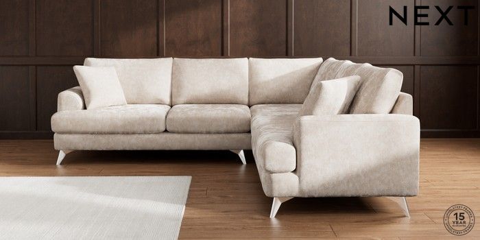 7.2.10 Buy Parker Medium Corner Sofa - Universal Distressed Velour Mid Natural High Metal - Chrome from the Next UK online shop Click here to use our accessible website