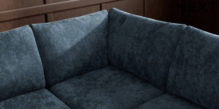 7.2.10 Buy Parker Medium Corner Sofa - Universal Distressed Velour Midnight Blue High Metal - Black from the Next UK online shop Click here to use our accessible website