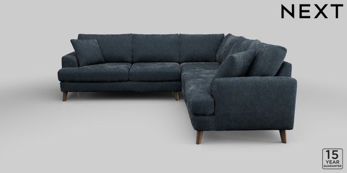 6.12.1 Buy Parker Medium Corner Sofa - Universal Distressed Velour Midnight Blue Low Retro Tapered - Mid from the Next UK online shop Click here to use our accessible website