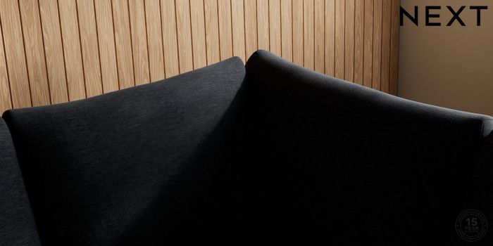 7.2.10 Buy Parker Medium Corner Sofa - Universal Fine Chenille Easy Clean Black Low Retro Tapered - Light from the Next UK online shop Click here to use our accessible website