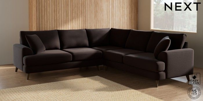 7.2.5 Buy Parker Medium Corner Sofa - Universal Fine Chenille Easy Clean Chocolate Brown Low Retro Tapered - Mid from the Next UK online shop Click here to use our accessible website