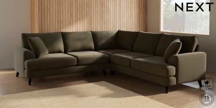7.2.5 Buy Parker Medium Corner Sofa - Universal Fine Chenille Easy Clean Dark Moss Green Low Retro Tapered - Dark from the Next UK online shop Click here to use our accessible website